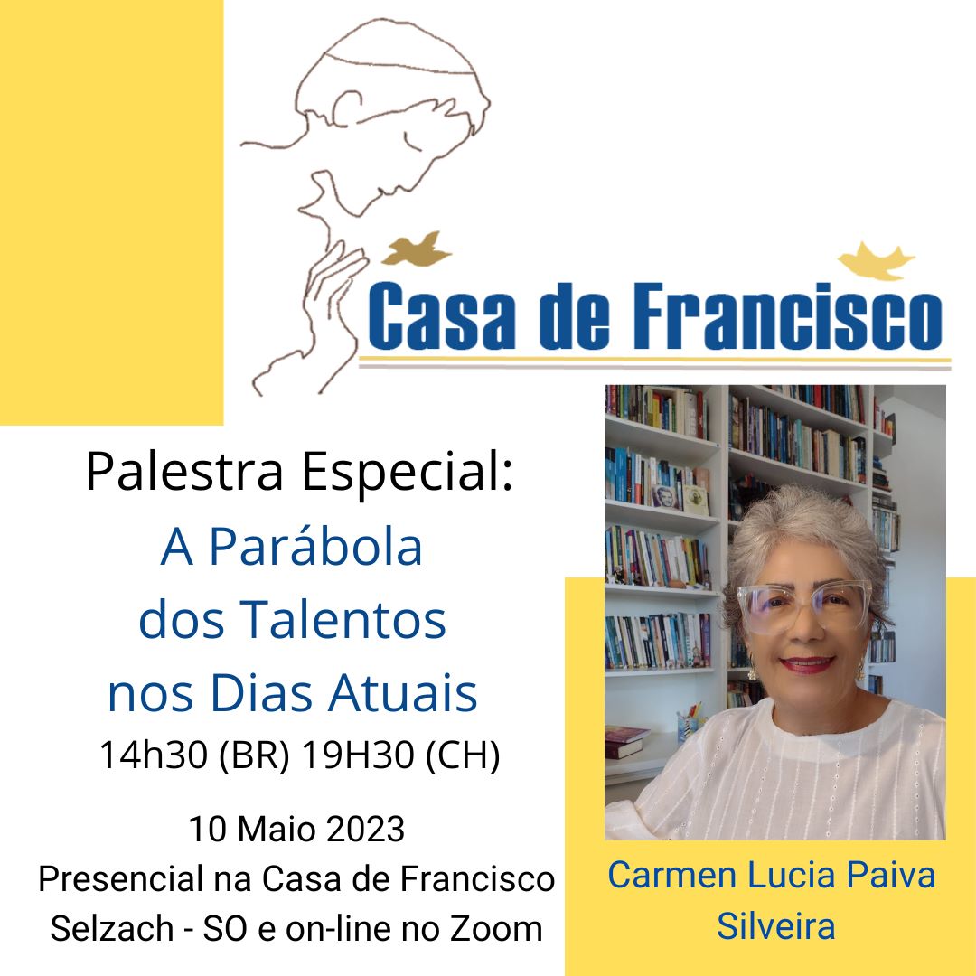 Carmen Lúcia Paiva Silveira é natural de Niterói, Rio de Janeiro, nasceu em 20 de junho de 1945. Formada em Farmácia e Bioquímica, Mestre e Doutora em Química, professora universitária e pesquisadora por 45 anos, atuando na área de Ensino de Ciências, Educação para a Saúde e Educação Ambiental. No Conselho Espírita do Rio de Janeiro (CEERJ) atua na área da Mediunidade e, na Federação Espírita Brasileira (FEB) colabora como facilitadora no Estudo do Evangelho Redivivo Virtual. Reside em Cabo Frio, RJ, desde 2008, colaborando com o movimento espírita da Região dos Lagos. Como escritora, na área espírita publicou Casa Maria de Magdala: lar de amor, aprendizado, renovação e aconchego espiritual, e, neste ano, lançamento pela FEB, A Prática Mediúnica Espírita, junto com Marta Antunes Moura.